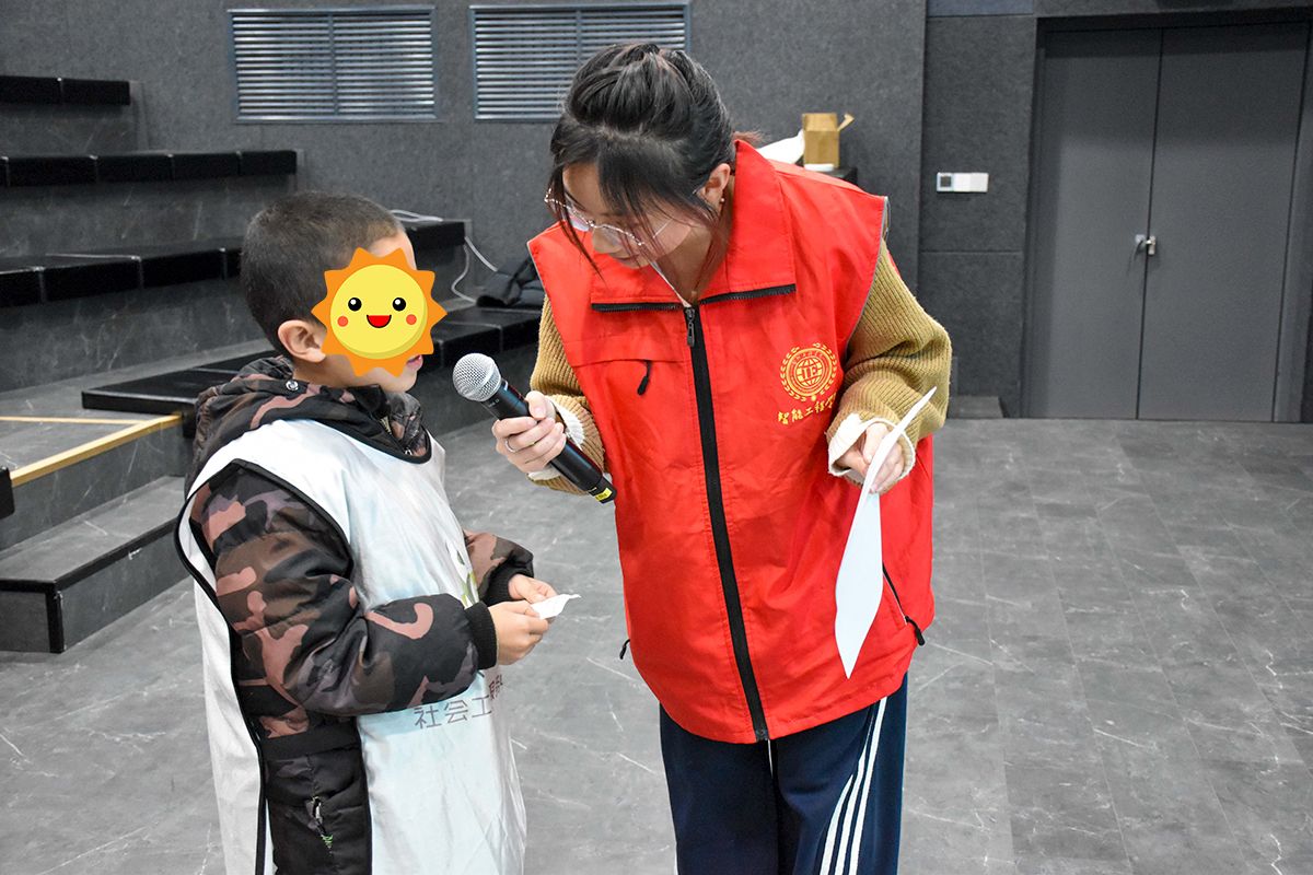 “答对了!”伴随着清脆的欢呼,法律知识盲盒问答率先点燃现场气氛。“看到高年级同学欺负小朋友怎么办?”“手机弹出中奖链接能点开吗?”彩色信封如同知识宝藏,每个问题都紧扣“小布谷”的真实生活。当“小布谷”小林(化名)抽到“被起难听外号该如何应对”时,他攥着信封认真地说:“我要先大声说‘不’,然后告诉老师!”志愿者蹲下身回应:“非常棒!记住,你的勇敢就是最有力的武器。”答对的孩子欣喜地接过贴纸奖品,法律意识在欢声笑语中悄然生根。