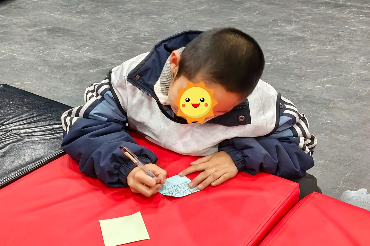 “我要把学到的知识贴在守护墙上!”活动尾声,“小布谷”们将写满安全小贴士的便利贴拼成一面五彩斑斓的“成长守护墙”。更动人的是情绪倾诉环节——孩子们在匿名便利贴上写下“最信任的三个人”和“最近的小烦恼”。志愿者收集后轻声说道:“看到有小朋友写道‘最信任的人是志愿者姐姐’,我们既感动更觉责任重大。”服务队以温和方式集体回应;对个性化困扰,则进行一对一耐心沟通。就这样,一张张承载着信任与烦恼的便利贴,不仅拼成了五彩斑斓的守护墙,更筑起了孩子们可以放心倾诉的心理港湾。