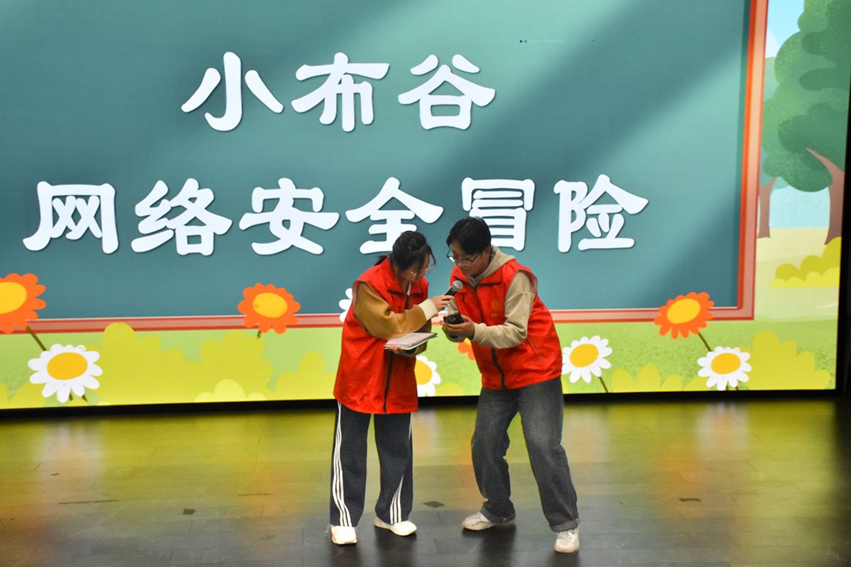 舞台灯光亮起,原创情景剧《小勇气,大力量》《小布谷的网络安全冒险》将活动带入沉浸式体验的核心。孩子们不再是观众,而是化身“勇敢小卫士”与志愿者同台演绎。当剧情中“小布谷”遭遇网络诱骗犹豫不定时,台下孩子齐声喊出“不轻信、不透露、不转账”的防护口诀;当校园霸凌情节上演时,他们高举小手,用稚嫩却坚定的声音喊出“找老师、告家长、打110”。情境演绎、举手投票、口诀闯关……每一个沉浸式环节都如同成长的试炼场,让抽象的法律条文化作守护生命的生动护盾。