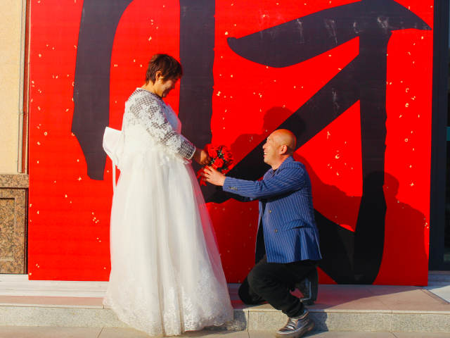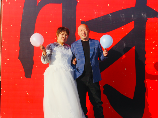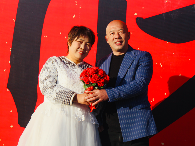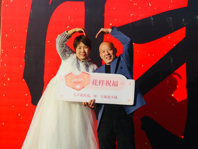 人间烟火暖,最抚岁月情。换上精致的婚纱礼服,李生华叔叔西装笔挺,代富桃阿姨裙摆翩跹,两人并肩站在飘着炸串香气与羊汤暖意的摊位前。志愿者们忙前忙后,不时帮叔叔整理西服、为阿姨抚平裙摆,还用各式各样的小道具制造出浪漫的氛围,按下快门捕捉每一个温情脉脉的瞬间。镜头里,叔叔阿姨相视一笑,眉眼间满是藏不住的爱意,平凡烟火气裹着数十年的相伴情深,定格成最浪漫的模样——原来最好的爱情,就是在人间烟火里,岁岁年年,温情不减。