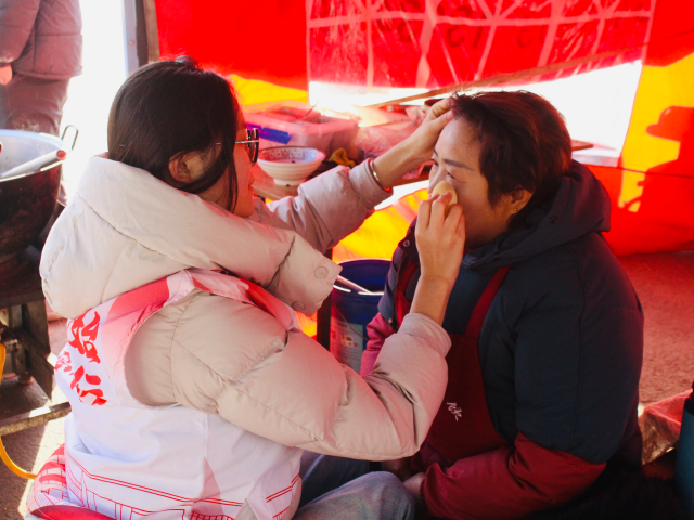 轻描眉黛、淡施粉黛,志愿者们手持化妆刷,耐心地为代富桃阿姨细细勾勒眉眼。柔和的眉粉顺着眉骨晕染出自然的弧度,轻薄的粉底抚平了眼角的细纹,一抹淡雅的唇色更添气色,轻轻拭去岁月留下的痕迹。淡雅的妆容完美贴合着阿姨的眉眼轮廓,没有刻意的浓妆艳抹,只以恰到好处的修饰,让沉淀半生的温婉气质,在精致的妆面里尽数显现。镜中的阿姨看着焕然一新的自己,眉眼间的笑意也愈发温柔动人,连眼角的笑纹都透着藏不住的欢喜。一旁的李生华叔叔早已看得入了神,眼神里满是藏不住的温柔与惊艳,他笑着走上前,轻轻牵起阿姨的手说着:“今天的你,比年轻时还要好看。”