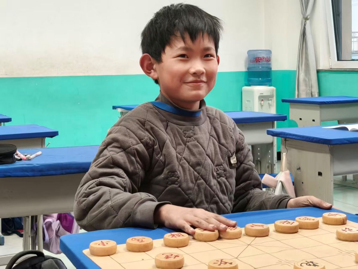 象棋班里更是“硝烟四起”,小棋手们两两对坐,棋盘上楚河汉界分明。“跳马!”“出车!”“将军!”稚嫩的喊声此起彼伏。有个戴眼镜的小男孩,每走一步都要琢磨半天,嘴角还偷偷抿着笑。经过几轮PK,他终于赢得比赛,接过志愿者递来的奖品时,脸蛋红扑扑的,骄傲地扬起下巴:“我以后要当象棋大师!”