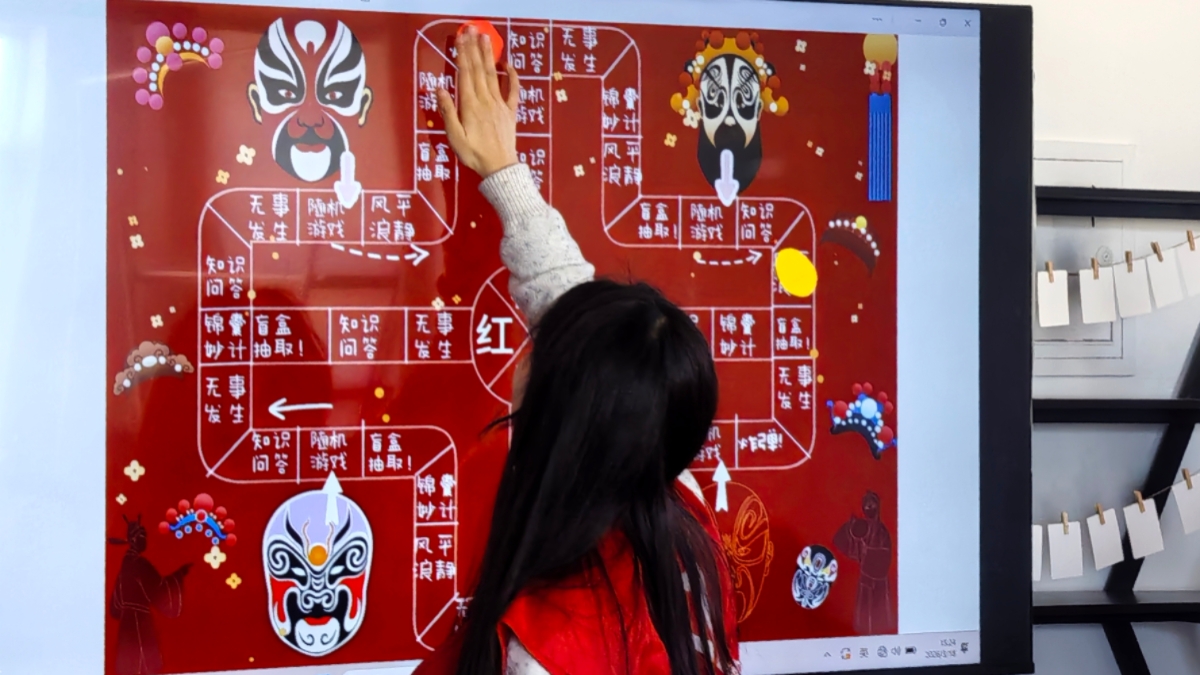 “三、二、一,开始!”随着一声令下,活动现场瞬间化作欢乐的海洋。巨大的飞行棋棋盘铺展在电视屏幕上,红、橙、黄、紫四色队伍蓄势待发。不同于普通的飞行棋,每一格都暗藏“玄机”——“请回答晋剧四大行当是什么?”“《打金枝》是哪位名家的代表作?”“图中服饰属于哪个行当?”……骰子掷出的不仅是前进的步数,更是一道道通往晋剧世界的“通关密语”。同学们或蹙眉思索,或欢呼雀跃,在一次次问答与闯关中,原本陌生的戏曲知识变得亲切可感。棋盘之上,是策略与运气的较量;棋盘之外,是传统与青春的对话。