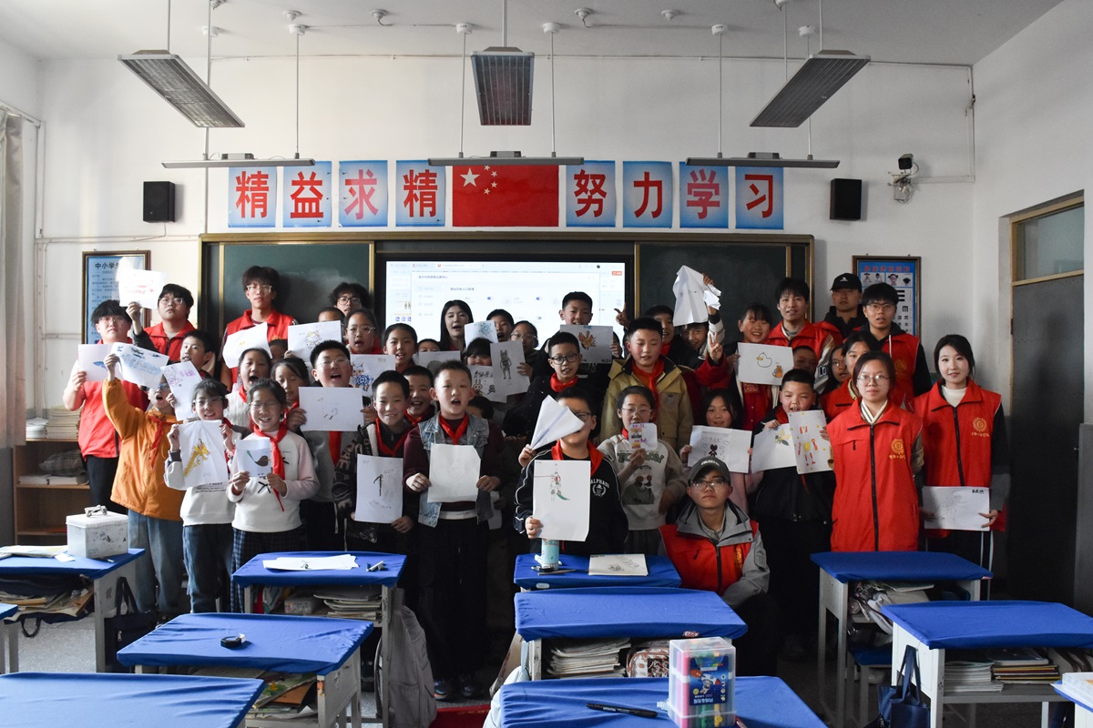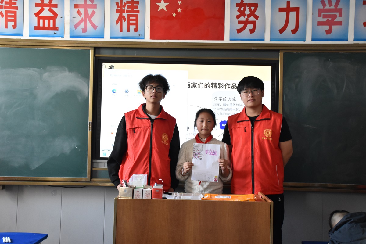 本次活动在孩子们的画笔下落下帷幕,但那些诞生于纸上的齿轮长颈鹿、弹簧兔子、螺丝纹路盘旋的古生物外壳,仍在诉说着工业与想象相遇的奇妙故事。孩子们用色彩和线条告诉所有人:钢铁可以温柔,机械可以有趣,工业文化离我们并不遥远。而对志愿者而言,这场活动也是一次温暖的成长——在孩子们的奇思妙想中收获新知,在每一次俯身倾听中理解陪伴的意义。未来,智能工程学院将继续推动志愿服务与地方文化深度融合,让更多青年学生在行走中感悟匠心,在奉献中积蓄力量,做心怀热忱、脚踏实地的时代同行者。