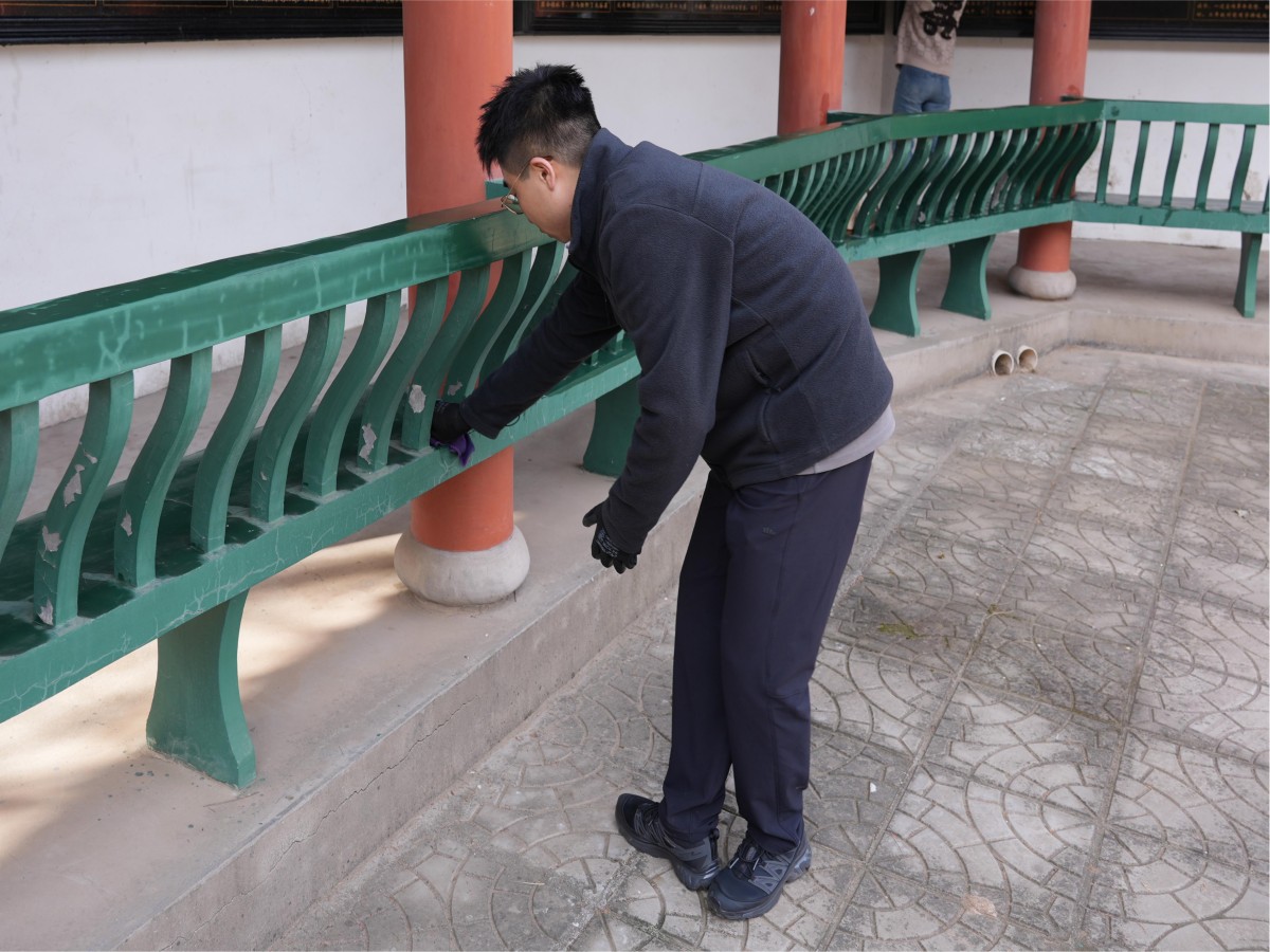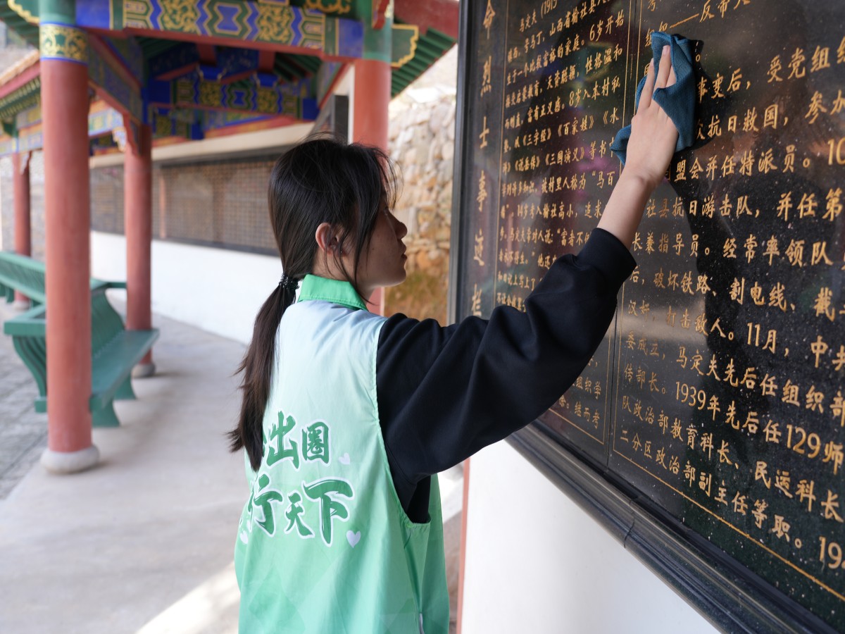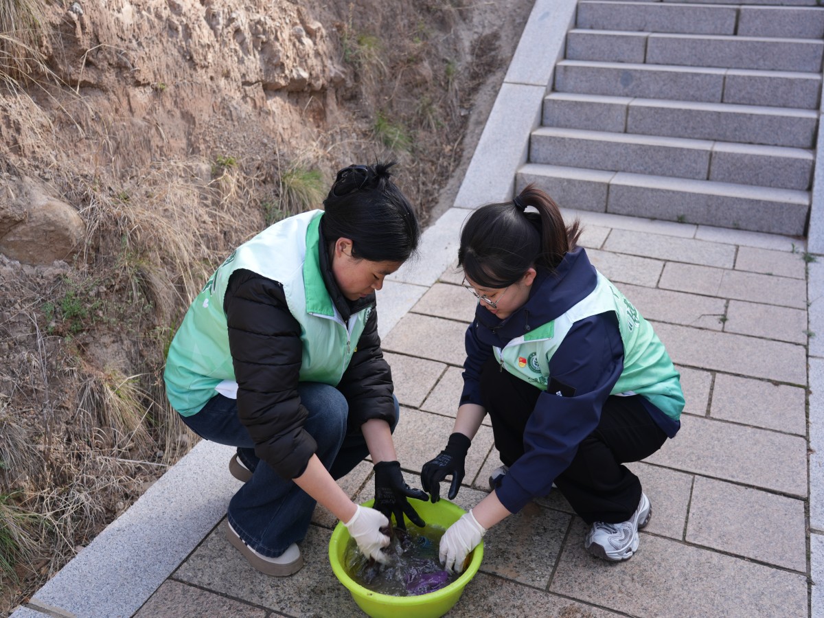 活动首日,志愿者们怀揣着满心崇敬与肃穆,缓步踏入苍松翠柏掩映的晋中市太谷区烈士陵园。春风轻拂,柏影婆娑,这片静谧的土地承载着无数英烈的忠魂,也让大家心中的敬意愈发深沉。志愿者们分工协作、默契配合,手持清洁工具,沿着陵园小径认真清扫,对园区路面、角落及墓碑周边进行全面整理,悉心维护着陵园的整洁与肃穆。他们俯身劳作的身影,与苍翠松柏相映成景,用双手细细打理这片安息之地,只为让英烈长眠之所始终洁净庄严,以最质朴的行动寄托心中敬意。