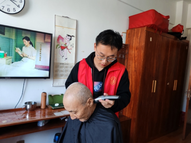 为确保活动顺利开展,服务队提前做好周密筹备,专门对接具备专业理发技能的学生志愿者,精心准备剪发工具、消毒用品、围布等物资,提前梳理服务流程,明确志愿者全程陪伴、贴心服务的要求,力求为老人们提供专业、细致、舒心的理发服务,用实际行动解决老年群体理发不便的生活难题,驱散他们的孤独感。