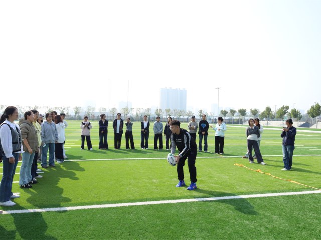 活动正式拉开帷幕前,“专属热身教练”带领大家有序集合。从关节活动到动态拉伸,每一个动作都细致指导,大家摩拳擦掌,眼神里满是对接下来橄榄球体验的向往。