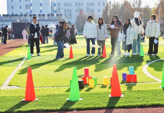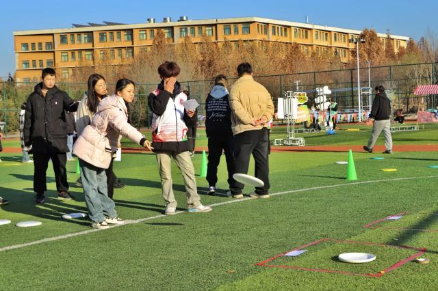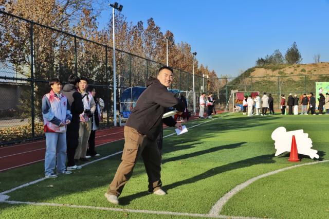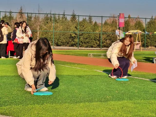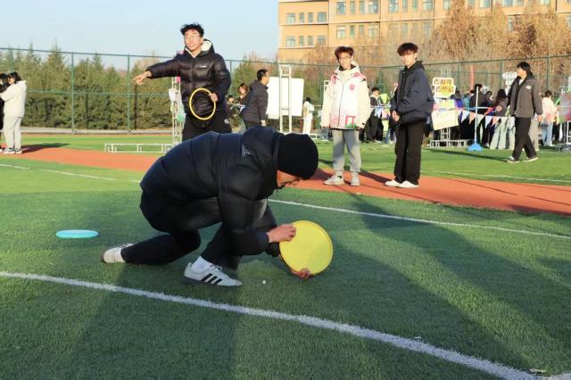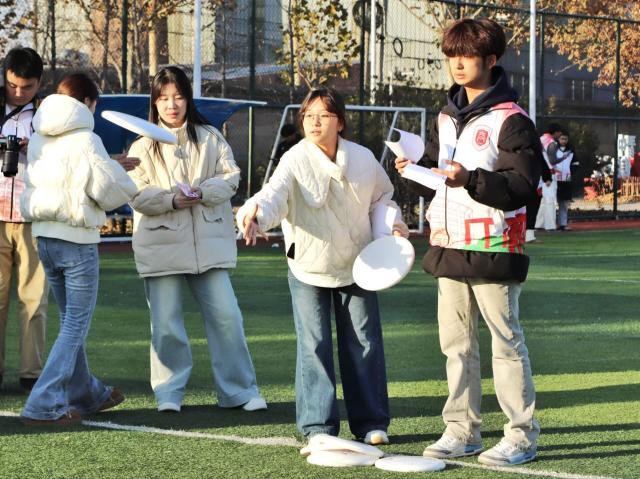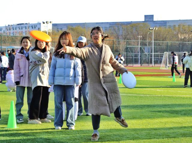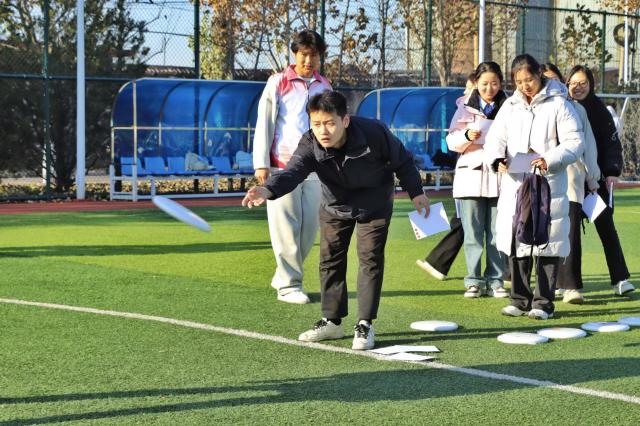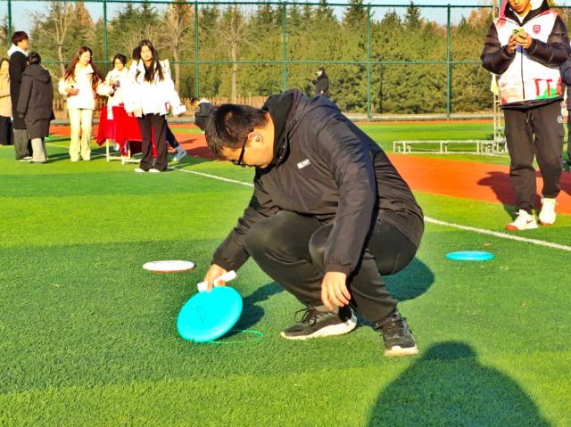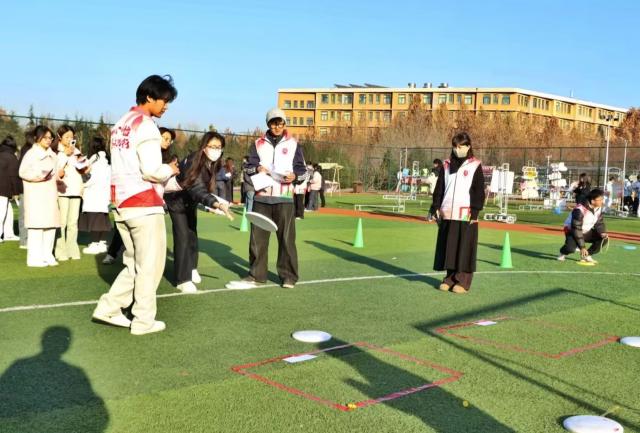 当飞盘破空而出,无论命中与否,总有欢呼与鼓励相伴。失误时,队友的安慰如暖流般治愈;成功时,彼此的拥抱比秋阳更暖。卫娜老师看到同学在九宫格投掷失误时,会主动上前拍拍肩膀鼓励:“没关系,调整一下肯定能中!”马俊丽老师则在一旁为每一位九宫格选手喝彩,用笑容传递温暖。这朵最特别的小红花,送给赛场上的每一份善意与温暖。