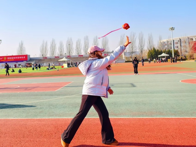 主持人刚讲完规则,这边就有人凑成了队:“哎,咱俩一组呗,我小时候扔沙包可准了!”那边几个同学已经举着沙包练了起来,单手抛接、两两互传,偶尔沙包没接住滚到脚边,弯腰去捡的功夫还不忘开玩笑:“这沙包跟我玩捉迷藏呢!”没一会儿,陌生感早被抛接间的笑声冲散,连风里都飘着“等不及要开始”的雀跃。