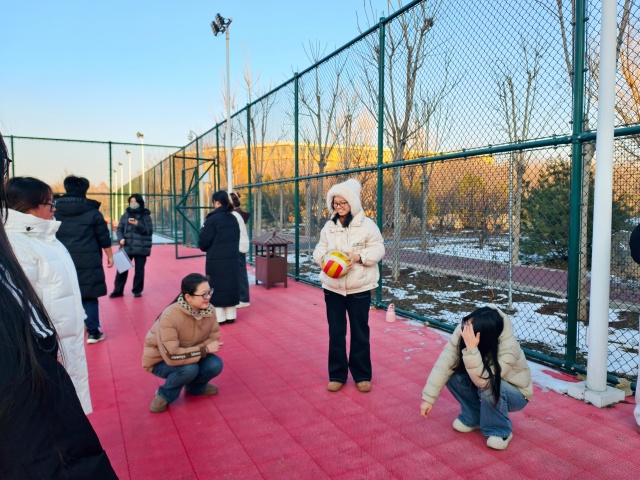 趣味赛的序幕由排球传递率先拉开!各组迅速围成“圆圈阵”,颇有几分“武林大会”集结的架势。首发队员攥着排球,活像握着“烫手山芋”,得精准无误地传给圈内队友。更关键的是,接球队员左右两侧的小伙伴,必须同步开启“下蹲模式”,全程保持姿势直到下一次传球结束,稍慢一步就可能“拖团队后腿”!赛场之上,大家全神贯注,传球的小心翼翼生怕失误,下蹲的反应神速绝不拖沓,时不时还互相喊一嗓子打气助威。每完成一次成功传递,队伍里就会爆发出一阵欢呼,那股子认真又欢乐的劲儿,感染力直接拉满!