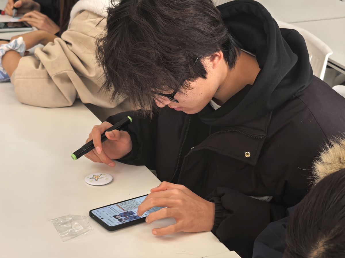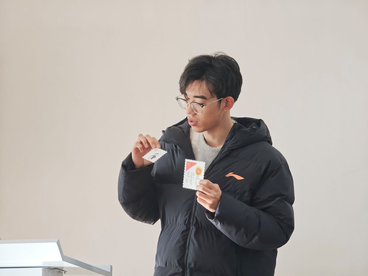 “我觉得第二组的‘使命’徽章,用齿轮和麦穗环绕党徽,设计感很强,体现了工人阶级和农民阶级的使命担当。”“第四组的‘初心’书签,虽然简洁,但那一抹鲜红的底色非常有冲击力,直击人心。”互评的过程,抽象的红色基因化为了可感的线条与色彩,崇高的理想信念在青年一代的解读中焕发出新的生命力。当思想的火花在彼此的欣赏与探讨中迸发,信仰的种子也已悄然在心底扎根,这正是青马工程寓教于行、润物无声的生动体现。