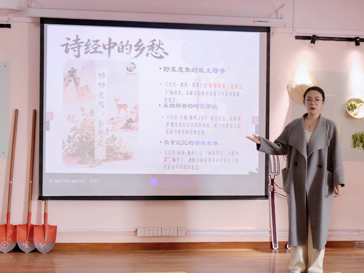 温少喆老师在野菜探秘之旅中指出,野菜不仅是自然馈赠,更承载半部中国史。从《诗经》的田园情愫到长征路上的救命粮,野菜既是文化符号与民生记忆,也蕴含红色基因。她勉励同学们以专业视角,探寻其生态价值、食品安全与文化传承,开启这场趣味实践之旅。