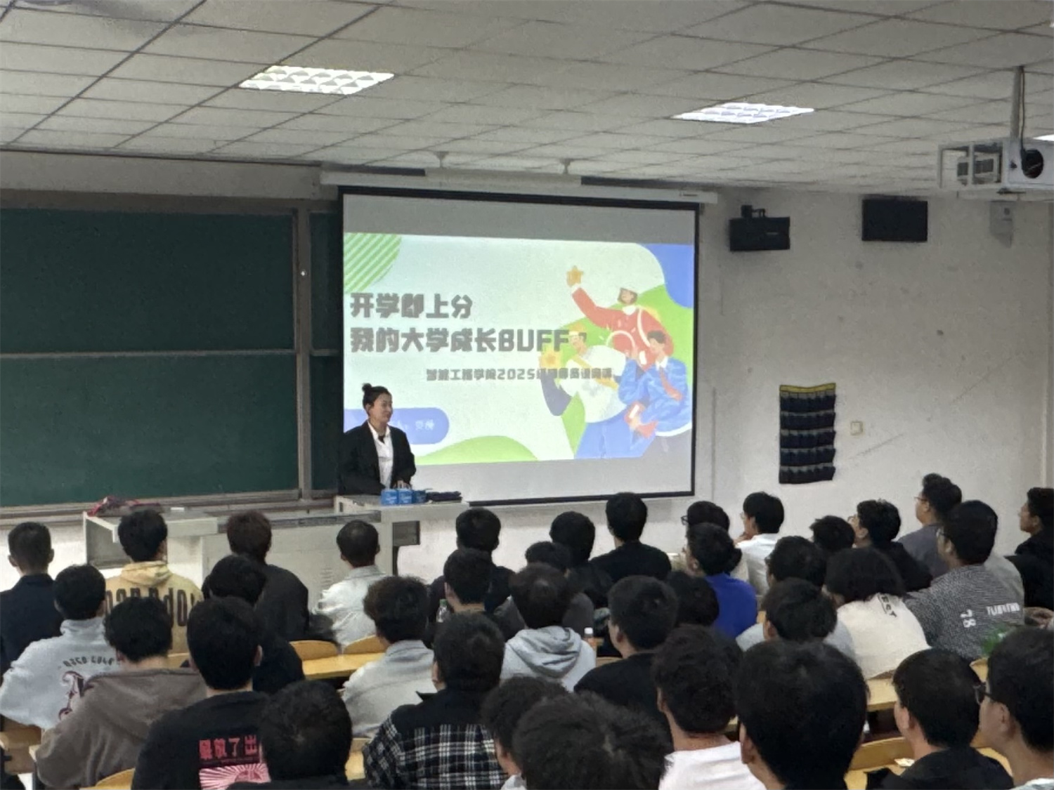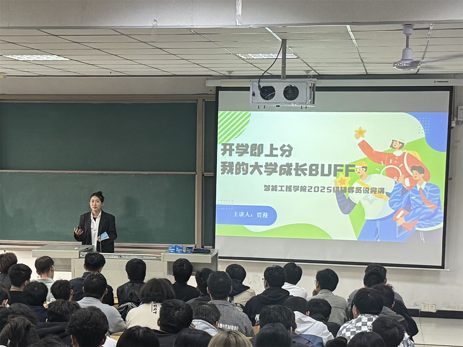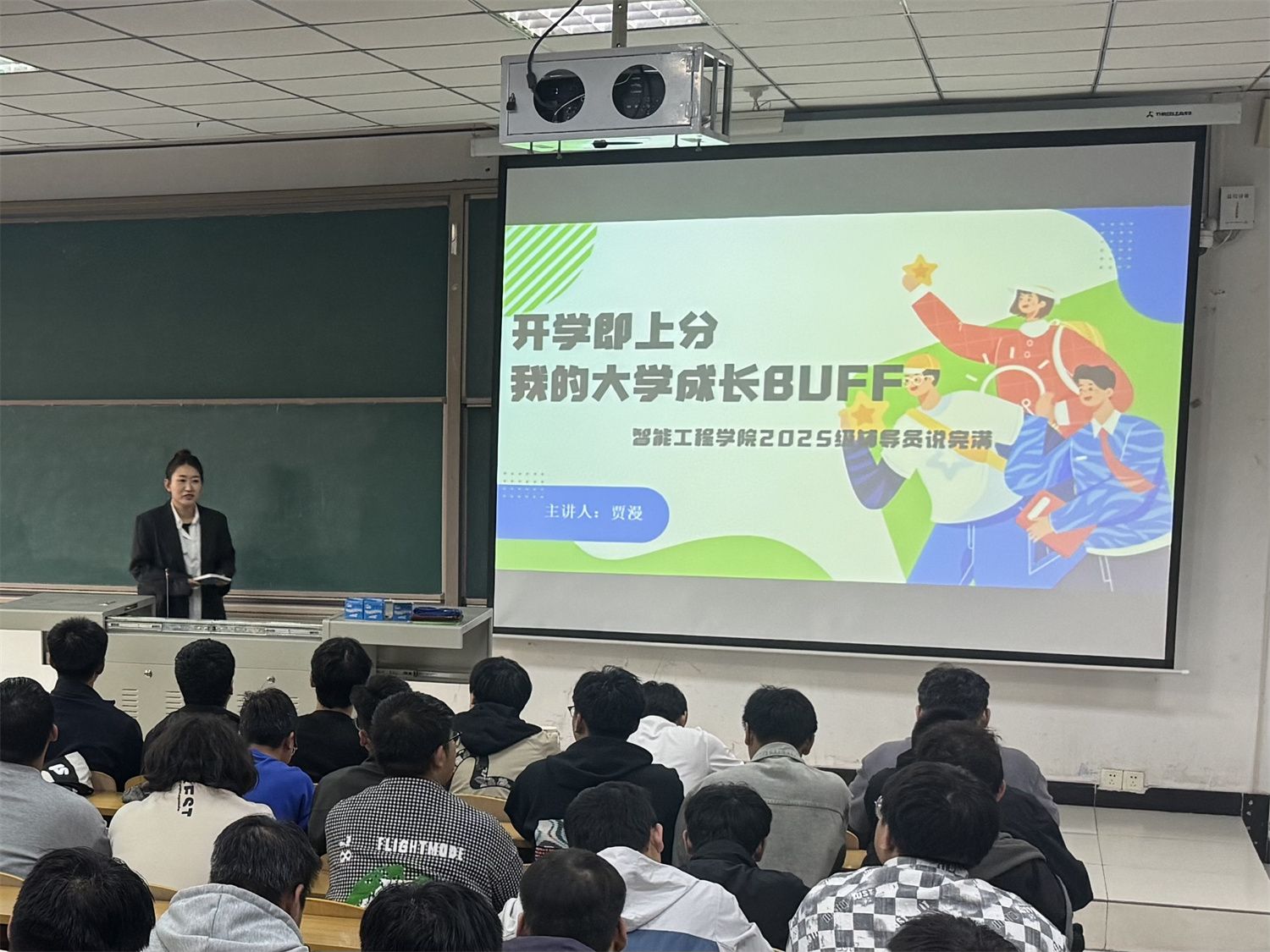 金秋送爽,丹桂飘香,25级新生怀揣梦想开启大学生活。面对全新的环境、自主的学习模式和丰富多彩的社团生活,这些“小萌新”在兴奋之余,也不免对如何度过有价值的四年感到迷茫。为此,智能工程学院辅导员贾漫老师于9月25日下午在2教201开展以“开学即上分——我的大学成长Buff”为主题的辅导员说完满活动,通过真实案例分享、优秀学长连线等形式,为新生们送上了一份干货满满的“大学通关攻略”。