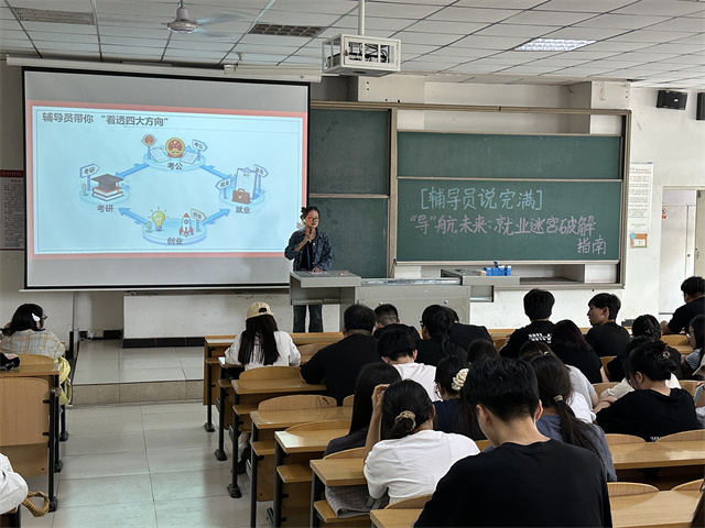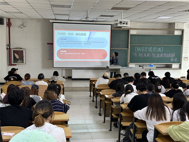 9月12日下午,淬炼商学院·国际商学院辅导员王婷于2教104教室以“就业谜题”为主题举办了一场辅导员说完满活动。此次活动内容扎实、视角多元、策略实用,旨在帮助同学们深入理解当前就业形势,并科学规划个人发展路径。