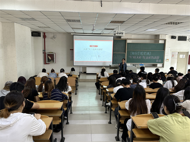 王婷老师进一步结合当前就业环境,分析了大学生面临的机遇与挑战,引导同学们正视现实、树立信心,提早进行职业谋划与能力储备。她指出:“认清自己、看清环境、明确路径”是破解就业迷宫的根本前提。