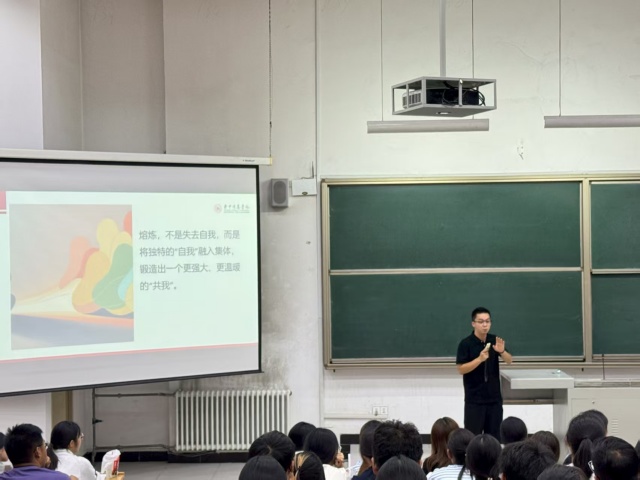 “‘自我’不是孤立的代名词,‘共我’也不是个性的消失。”活动开场,乔鸿超辅导员就用通俗的解读打破了大家对“集体”的刻板认知——所谓“熔炼”,是让每个有独特闪光点的“自我”,像拼图一样融入集体,最终拼成一幅更完整、更有力量的“共我”图景。这番话让原本对“融入集体”有些焦虑的新生们,瞬间卸下了心理负担。