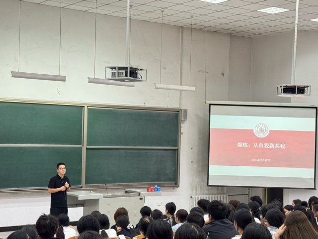 “室友会不会觉得我不合群?班级通知总错过该怎么办?”刚踏入大学校园的新生,或多或少都有过这样的困惑。9月18日晚上,淬炼商学院·国际商学院辅导员乔鸿超在博学楼301教室开展以“熔炼:从自我到共我”为主题的辅导员说完满活动,用切实方法帮大家破解入学适应难题,找到个人与集体同频共振的成长密码。
