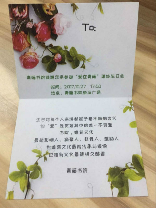 一个归宿使我安稳,不愿茫茫人海四处流荡;一句问候给我温情,泛起平静心湖阵阵波澜。离家数月心里不免有些思念和孤单,但是今夜青藤的一场集体生日派对带给我太多感动和关怀。 邀请函里流露出的一丝丝心意 20...