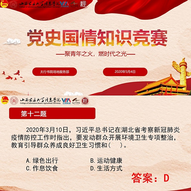 为纪念“五四”运动101周年,大力弘扬以爱国主义为核心的伟大民族精神,在“五四”青年节之际,太行书院联合经济与管理学院举办了“青年有我”党史国情知识竞赛。学子们相聚“云”端,通过线上答题的形式掀起了学党史...