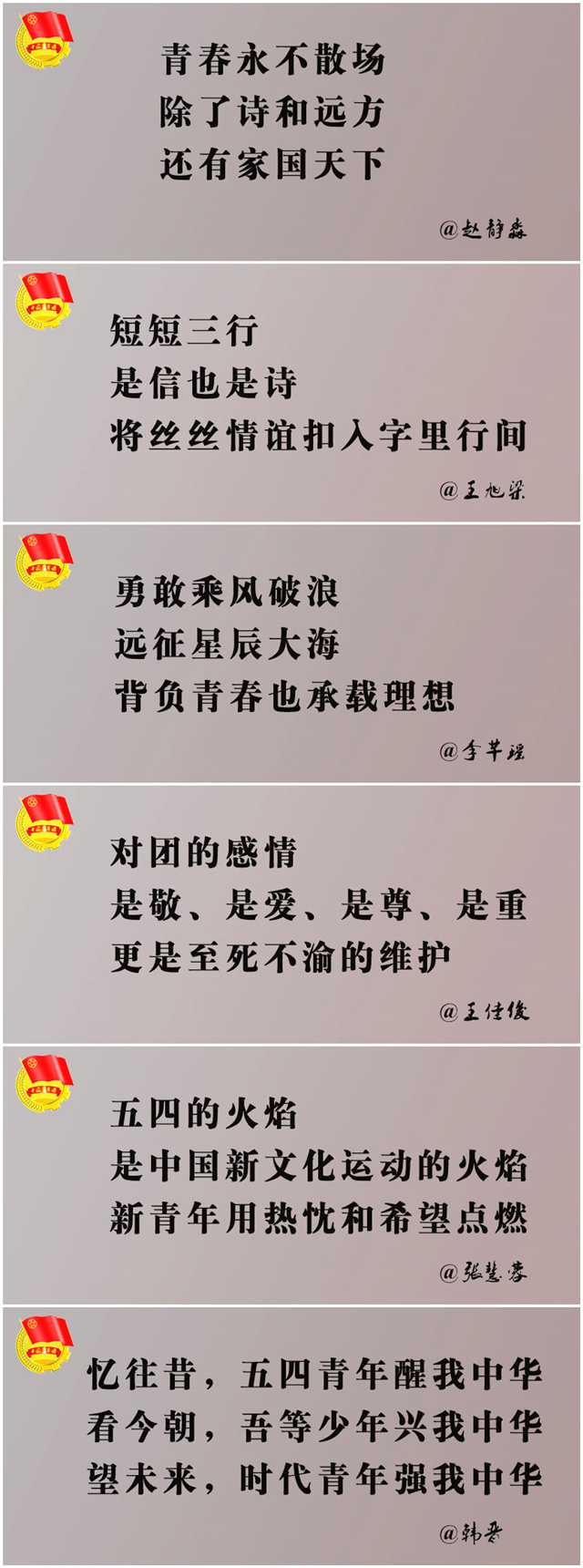 春风送暖,草长莺飞。时光走过一个世纪,“爱国、进步、民主、科学”,“五四”精神不曾褪色,青春之歌依然绚丽雄浑。一代人成一代功,一代人做一代事。五月,青年团员用不一样的方式践行“五四”精神、致敬“五四”...
