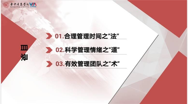为进一步强化骨干班学员自身技能,深入挖掘日常工作、学习中的方式方法,提高各位学生干部工作效率,5月19日16:00,第十二期“青马工程”完满教育学生骨干培养计划致远班第二期讲座以“告别分母,做闪闪发光的完满人...